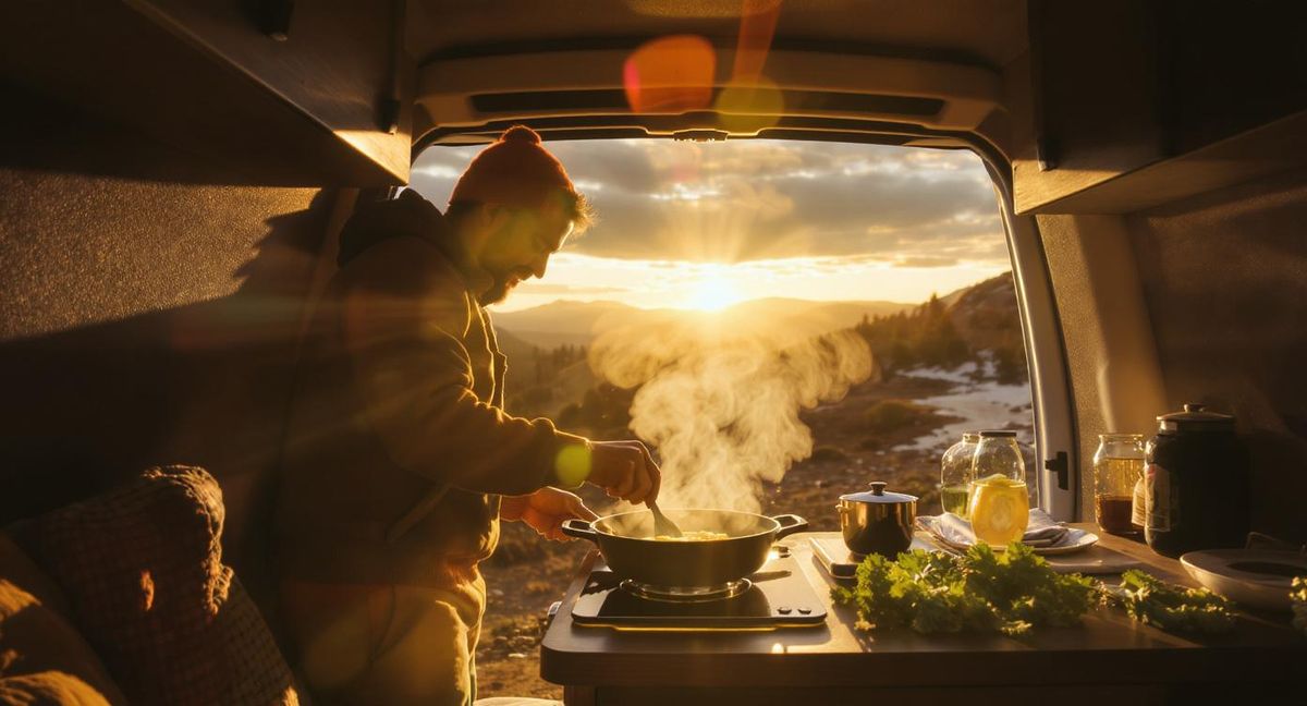 A former line cook turned full-time van dweller, Theo lives in a Promaster 136 and has cooked roughly 1,800 meals out of it. He covers cooktops, cookware, and meal prep — and writes the recipes that actually fit a single-burner reality.